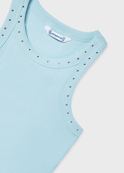 Canotta in cotone elasticizzato con bretelle sottili, perfetta per la stagione calda. Realizzata con il 95% cotone e 5% elastan, offre comfort e libertà di movimento per tutto il giorno. Il tessuto a costine garantisce una vestibilità aderente e una buona traspirazione. Ideale da indossare da sola o come base sotto altri capi. Facile da lavare e resistente nel tempo.