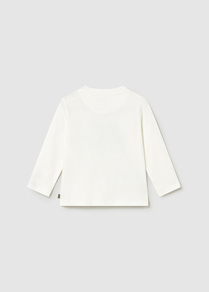Maglietta a maniche lunghe realizzata in 100% cotone puro, perfetta per il comfort quotidiano dei bambini. Il tessuto naturale garantisce morbidezza sulla pelle e traspirabilità ideale per ogni stagione. Con la sua applicazione distintiva, questa maglietta Mayoral combina stile e praticità. Un capo essenziale da avere nell'armadio dei più piccoli, facile da abbinare e resistente nel tempo.