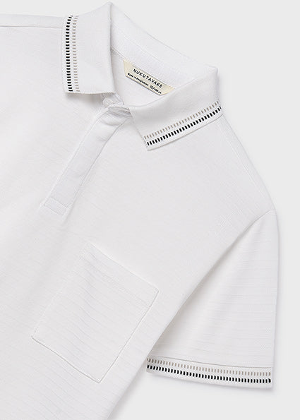Elegante polo a manica corta in puro cotone 100%, perfetta per un look casual e versatile. Realizzata con materiale di qualità, garantisce comfort e traspirabilità durante tutto il giorno. Le tasche pratiche aggiungono funzionalità allo stile classico. Ideale per bambini che cercano un capo essenziale, facile da abbinare con pantaloni o shorts. Un must-have nel guardaroba estivo di ogni ragazzo.