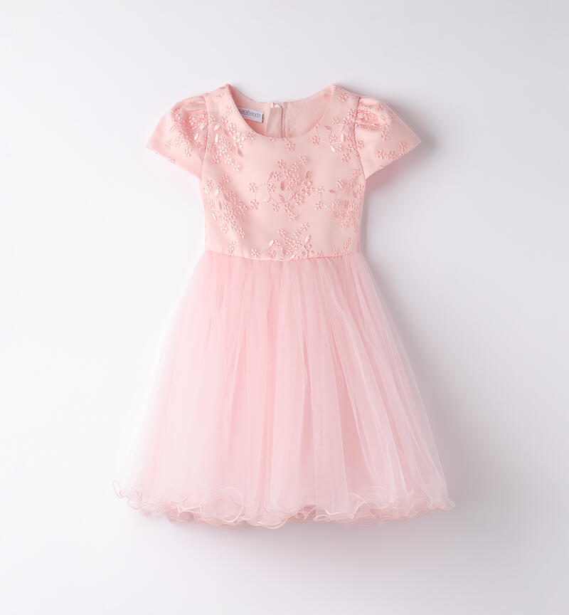 Gonna in tulle. Il modello presenta apertura sul retro con zip, fiori in applicazione nella parte superiore. Lunghezza al ginocchio.